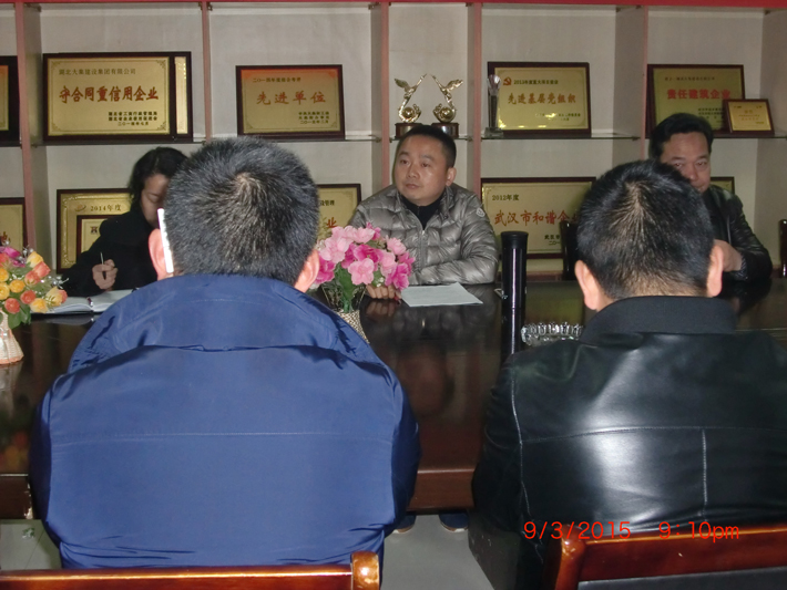 董事長徐濤最后提要求,徐董要求公司每一個崗位員工都能發(fā)揮應有的作用,人人都當實干家,當天工作不過夜,當月工作提前抓,狠抓落實過程,確保目標落地。2015年公司的總目標是要超越2014年,在公司推行新的薪酬和績效管理制度,確保各施工項目安全、質(zhì)量和進度,努力爭創(chuàng)質(zhì)量和安全黃鶴杯各二次;建設一支紀律嚴明,能接業(yè)務、能打勝仗的項目經(jīng)理隊伍,努力培育公司參入市場競爭的能力,使公司業(yè)績、員工收入同步增長。徐董并對公司各部門2015年的工作作了具體安排。