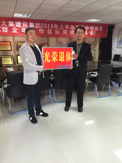2015年11月2日上午,艷陽高照,湖北大集建設(shè)集團(tuán)有限公司向退休職工何維祥同志送去關(guān)愛,在歡送儀式上,集團(tuán)董事長徐濤同志親自為退休職工頒發(fā)了紀(jì)念獎牌和萬元慰問金,并送上了衷心的祝福,徐董說:“感謝老員工多年來為公司做出的貢獻(xiàn),公司發(fā)展從小到大離不開老職工們打下的堅(jiān)實(shí)基礎(chǔ),公司永遠(yuǎn)不會忘記他們?yōu)楣镜钠D辛付出和貢獻(xiàn)。公司將繼承和發(fā)揚(yáng)他們艱苦創(chuàng)業(yè)、無私奉獻(xiàn)的優(yōu)良傳統(tǒng),努力工作,不斷推動企業(yè)健康、穩(wěn)步向前發(fā)展”。同時徐董還說:“一個企業(yè)不僅要靠豐厚的待遇來激勵員工,更要靠濃厚的企業(yè)文化來凝聚員工,老職工退休舉行“退休”儀式,可以讓年輕員工感受到,只要我們努力學(xué)習(xí),愛崗敬業(yè)、為企業(yè)作出貢獻(xiàn),企業(yè)就永遠(yuǎn)不會忘記他們”。