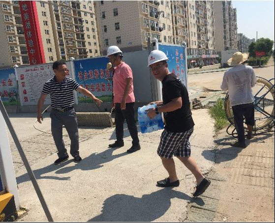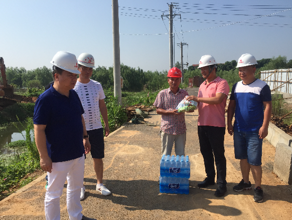 時下正值三伏天,暑氣逼人,持續(xù)高溫給施工現場一線的員工帶來了嚴峻的考驗,為確保安全生產以及一線人員的人身安全和身體健康,公司總經理徐遠征、副總經理徐家富領導班子及工程管理部和項目經理們組成慰問組前往各施工現場精心開展“情系一線,夏送清涼”的慰問活動,深入到公司污水泵站項目部、盟盛項目部、外環(huán)路、常貴路、常貴南路項目部、仟島項目部、南湖五期項目部、世茂項目部等施工現場,為奮戰(zhàn)在一線的員工送去了防暑降溫用品,把清涼送到員工們的心坎上。