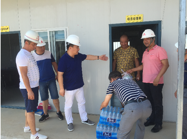 “現在天氣炎熱,大家要注意高溫施工安全,做好防暑降溫工作!”每到一處,公司總經理和副總就耐心跟施工現場人員叮囑一番,同時要求相關負責人千方百計做好員工的后勤保障工作,加強對飲用水、食品和工地食堂衛(wèi)生管理,確保一線人員身體健康。慰問組人員親手把礦泉水、藥品等防暑降溫用品送到施工現場人員手上,施工現場負責人一致表示,將按照集團公司領導的要求,認真做好施工現場防暑降溫工作和安全生產工作,保證工程各項工作的順利開展。