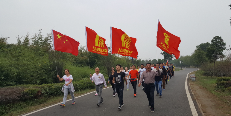 “1234,1234,大集,大集,齊心協(xié)力,奮勇向前,只爭朝夕……”整齊劃一的吶喊聲和腳步聲迎面而來,鮮艷奪目的企業(yè)司旗,年輕似火的團隊成員一一盡現(xiàn)眼簾,大家表現(xiàn)得十分活躍,動作協(xié)調(diào),緊密配合,處處可以感受到團隊合作的力量。在這里,在此時,正在如火如荼的上演一場熱身賽。這里是后官湖濕地公園的跑道上,也是湖北大集建設(shè)集團為參加本月底半馬比賽而組織的集結(jié)地。