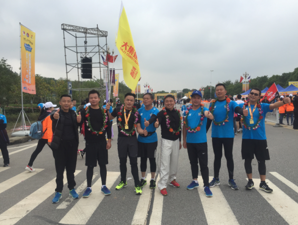 在比賽時(shí)間快到1小時(shí)30分時(shí),大家緊跟濤總身后陸續(xù)順利地過關(guān)跑完全程,徹底完成了本次半程賽事。大家都?xì)g呼雀躍地慶祝著勝利凱旋,后勤人員送上鮮花頒發(fā)獎牌及紀(jì)念品,每個(gè)人臉上都洋溢著勝利的喜悅。