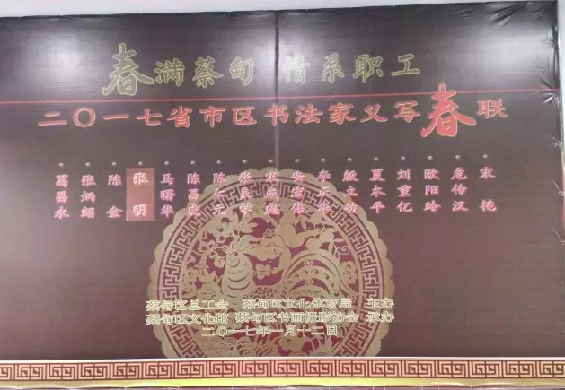 元月12日上午,在雞年新春即將來(lái)臨之際,蔡甸區(qū)總工會(huì)組織省市區(qū)書(shū)法協(xié)會(huì)書(shū)法家在區(qū)總工會(huì)工人活動(dòng)中心開(kāi)展《春滿蔡甸·情系職工》2017省市區(qū)書(shū)法家義寫(xiě)春聯(lián)、送祝福活動(dòng)。區(qū)總工會(huì)、文體局相關(guān)領(lǐng)導(dǎo)、省市區(qū)著名書(shū)法家張良學(xué)、陳昌虎、宋成彪等出席了此次活動(dòng),集團(tuán)公司人事行政部吳志勇、周仟應(yīng)邀參加了該活動(dòng)。