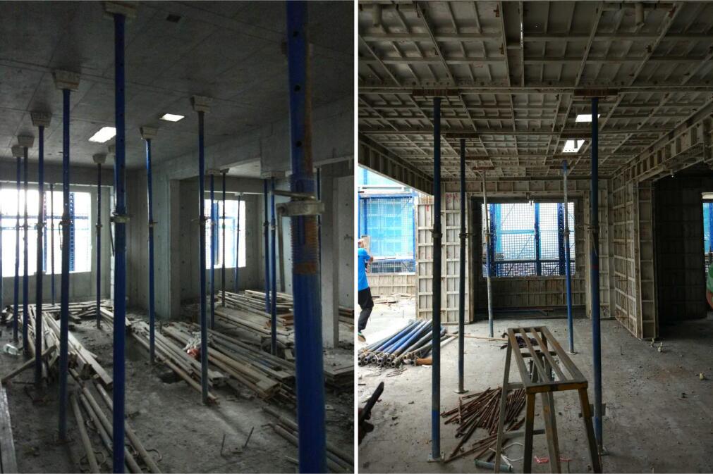 鋁合金模版支撐系統(tǒng),少量頂撐,頂受力點,少量工人即可完成