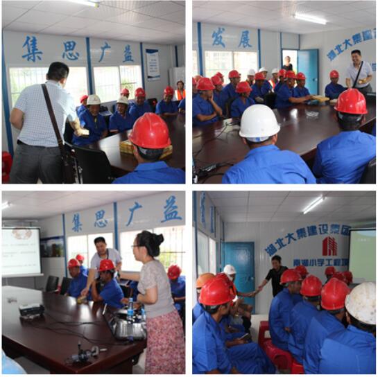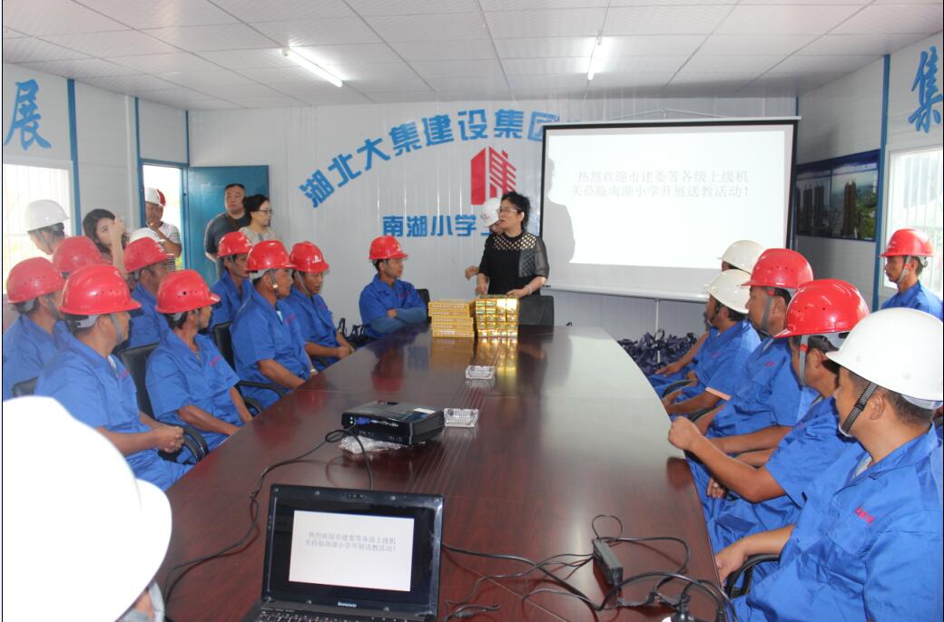 8月30日,市城建委、市人事局、市建筑工程質(zhì)量監(jiān)督站、蔡甸區(qū)監(jiān)管站一行領(lǐng)導(dǎo)蒞臨集團(tuán)南湖小學(xué)項(xiàng)目開展送教活動(dòng),現(xiàn)場(chǎng)向工人發(fā)放保溫杯,毛巾、球鞋、收音機(jī)等生活用品和文娛用品,并通過有獎(jiǎng)問答的形式向現(xiàn)場(chǎng)務(wù)工人員進(jìn)行了生動(dòng)有趣的安全教育和法律保險(xiǎn)知識(shí)普及,以增強(qiáng)農(nóng)民工的道德法制意識(shí)和安全文明施工意識(shí),更好地適應(yīng)現(xiàn)代化城市建設(shè)的需要!活動(dòng)現(xiàn)場(chǎng),兩位老師親切和藹,工人積極踴躍,場(chǎng)面熱烈活絡(luò)!