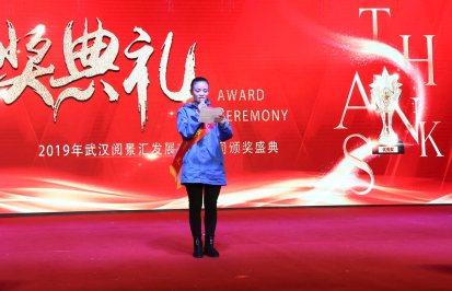 武漢花博匯總經(jīng)理助理卿尚波、運(yùn)營總監(jiān)黃艷為優(yōu)秀員工頒獎