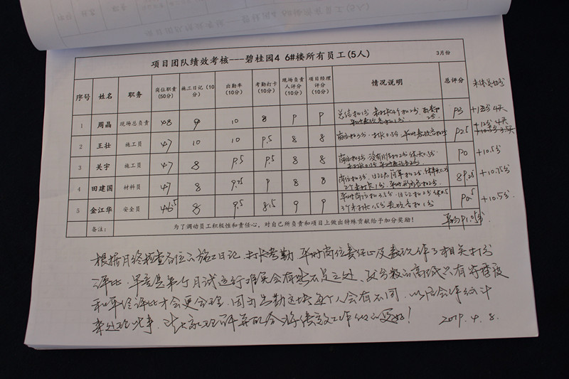 新版項(xiàng)目績(jī)效考核制度發(fā)布后,項(xiàng)目經(jīng)理周勝書(shū)立即組織自己帶領(lǐng)的項(xiàng)目成員對(duì)考核制度進(jìn)行集中學(xué)習(xí),讓項(xiàng)目人員全面了解制度內(nèi)容。此外,周經(jīng)理還深入研究考核指標(biāo)及內(nèi)容,并以其為標(biāo)準(zhǔn),結(jié)合自身項(xiàng)目的實(shí)際情況制定了項(xiàng)目團(tuán)隊(duì)績(jī)效考核表,從崗位職責(zé)、考勤打卡、施工日記、團(tuán)隊(duì)配合等方面對(duì)項(xiàng)目人員進(jìn)行考核,并讓項(xiàng)目員工嚴(yán)格執(zhí)行目標(biāo)管理卡,對(duì)當(dāng)月的工作任務(wù)進(jìn)行量化,確保項(xiàng)目人員工作時(shí)有目標(biāo)、有責(zé)任、有動(dòng)力。