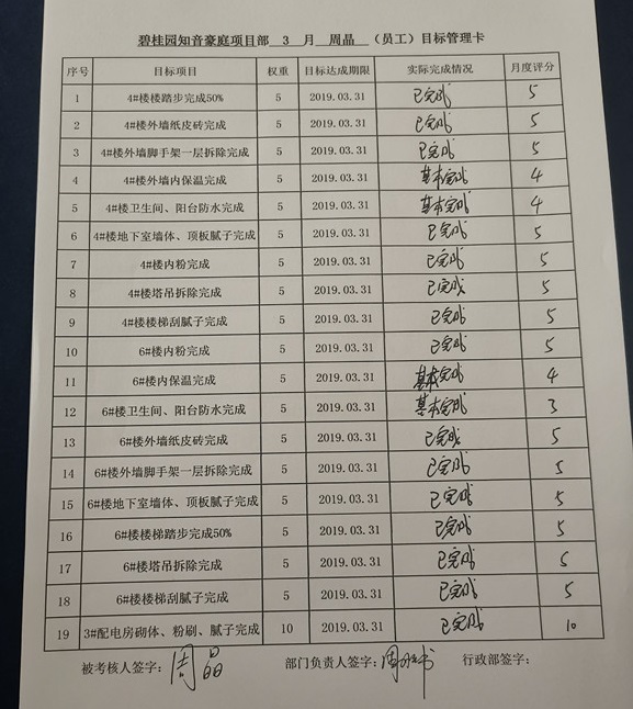 目前,集團(tuán)實(shí)施的項(xiàng)目績(jī)效考核制度是今年2月份修訂完善后發(fā)布的,該制度新增了垂直管理環(huán)節(jié),將項(xiàng)目部相關(guān)崗位納入集團(tuán)統(tǒng)一管理,同時(shí)通過(guò)《員工目標(biāo)管理卡》將項(xiàng)目月度目標(biāo)分解到每位項(xiàng)目人員頭上,使項(xiàng)目人員更加深刻的明確自身崗位職責(zé),從而真正實(shí)現(xiàn)目標(biāo)責(zé)任到人。