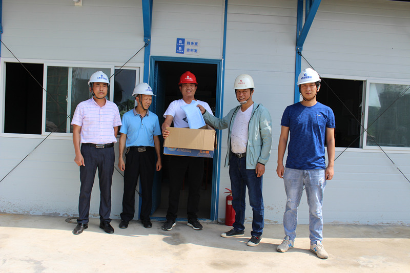 小集還建社區(qū)五期地下室、大集消防站、世茂龍灣、泰禾君悅花園……每到一處,集團(tuán)工程部都會(huì)將購(gòu)買好的毛巾、風(fēng)油精、十滴水、人丹、藿香正氣水等防暑降溫物資送到項(xiàng)目人員手中,并要求各項(xiàng)目部一定要把施工人員的身體健康放在首位,要在全力以赴抓質(zhì)量、搶進(jìn)度、創(chuàng)佳績(jī)的同時(shí),嚴(yán)格按照國(guó)家有關(guān)規(guī)定,把防暑降溫工作落實(shí)好、做到位,要根據(jù)天氣氣溫的變化,合理安排工作時(shí)間,作好安全預(yù)防措施、備足防暑降溫物質(zhì),讓員工們安全度過(guò)高溫天氣。