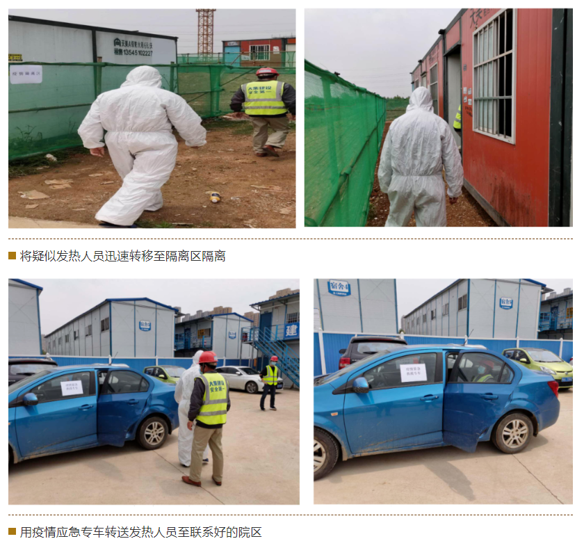本次演練現(xiàn)場模擬一例疑似發(fā)熱患者,從被發(fā)現(xiàn)到應(yīng)急處理的全過程。演練內(nèi)容包括情況上報(bào)、項(xiàng)目應(yīng)急預(yù)案啟動(dòng)、緊急隔離、送醫(yī)、現(xiàn)場消毒等環(huán)節(jié)。整個(gè)演練過程緊張有序、防疫物資標(biāo)準(zhǔn)齊全、保障到位,參加演練人員反應(yīng)迅速、配合默契、職責(zé)明確,達(dá)到了預(yù)期效果。