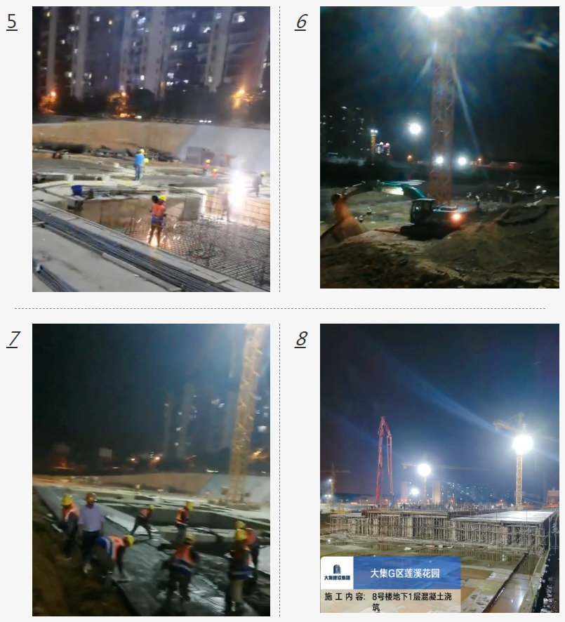 大集G區(qū)蓮溪花園項目作為蔡甸區(qū)重要的民生項目之一,總建筑面積超過26萬平方米,其中地下室面積約5.28萬平方米(人防工程1萬多平方米)。該項目自5月8日正式開工以來,施工任務重,工期要求緊,項目部團隊集中人力、物力,克服各種問題和困難,保安全、抓質量,晝夜施工,挑燈夜戰(zhàn),全力以赴加快項目建設進度。