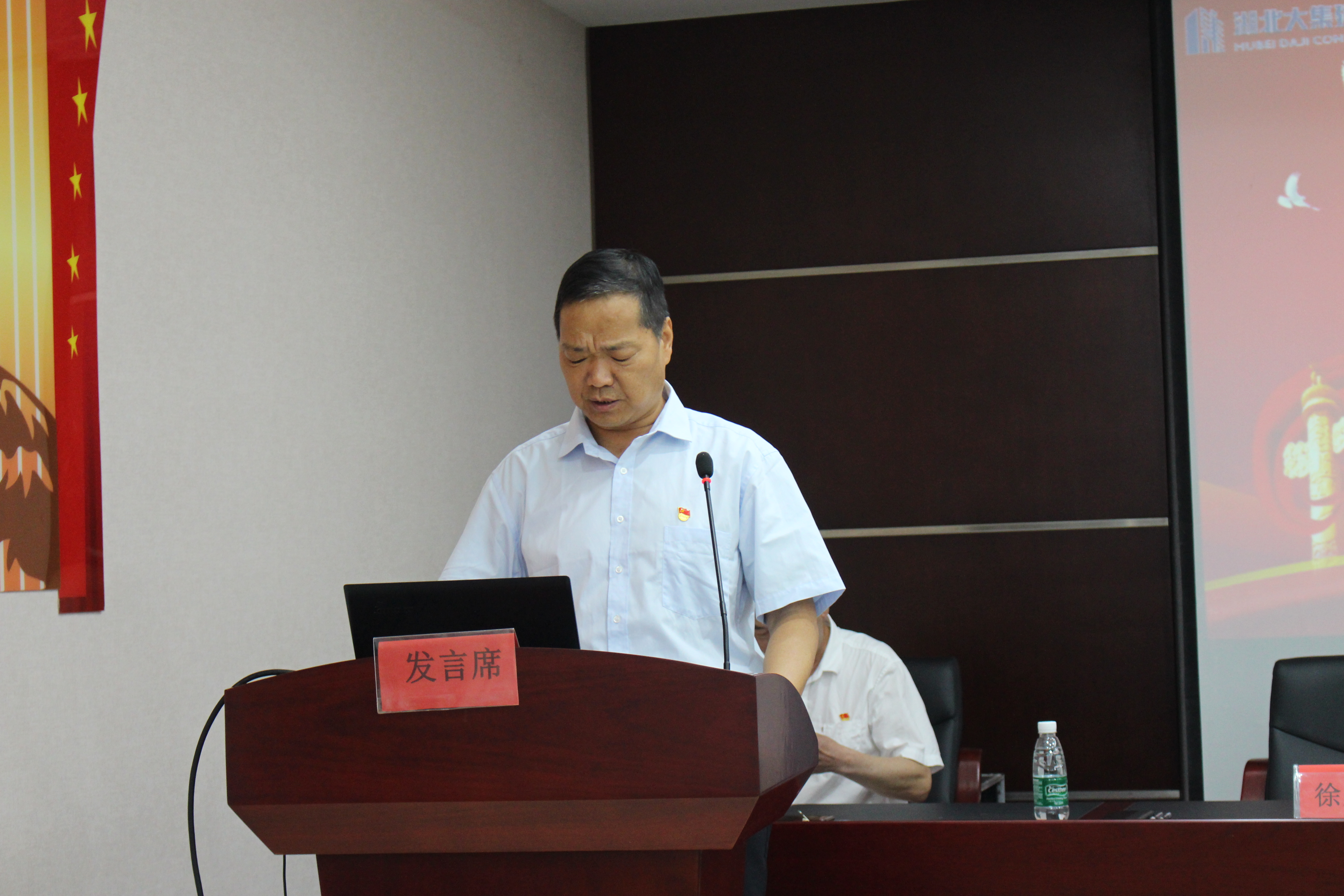 集團(tuán)黨委副書記徐家富同志宣讀中共湖北大集建設(shè)集團(tuán)有限公司黨委《關(guān)于表彰優(yōu)秀黨員的決定》。