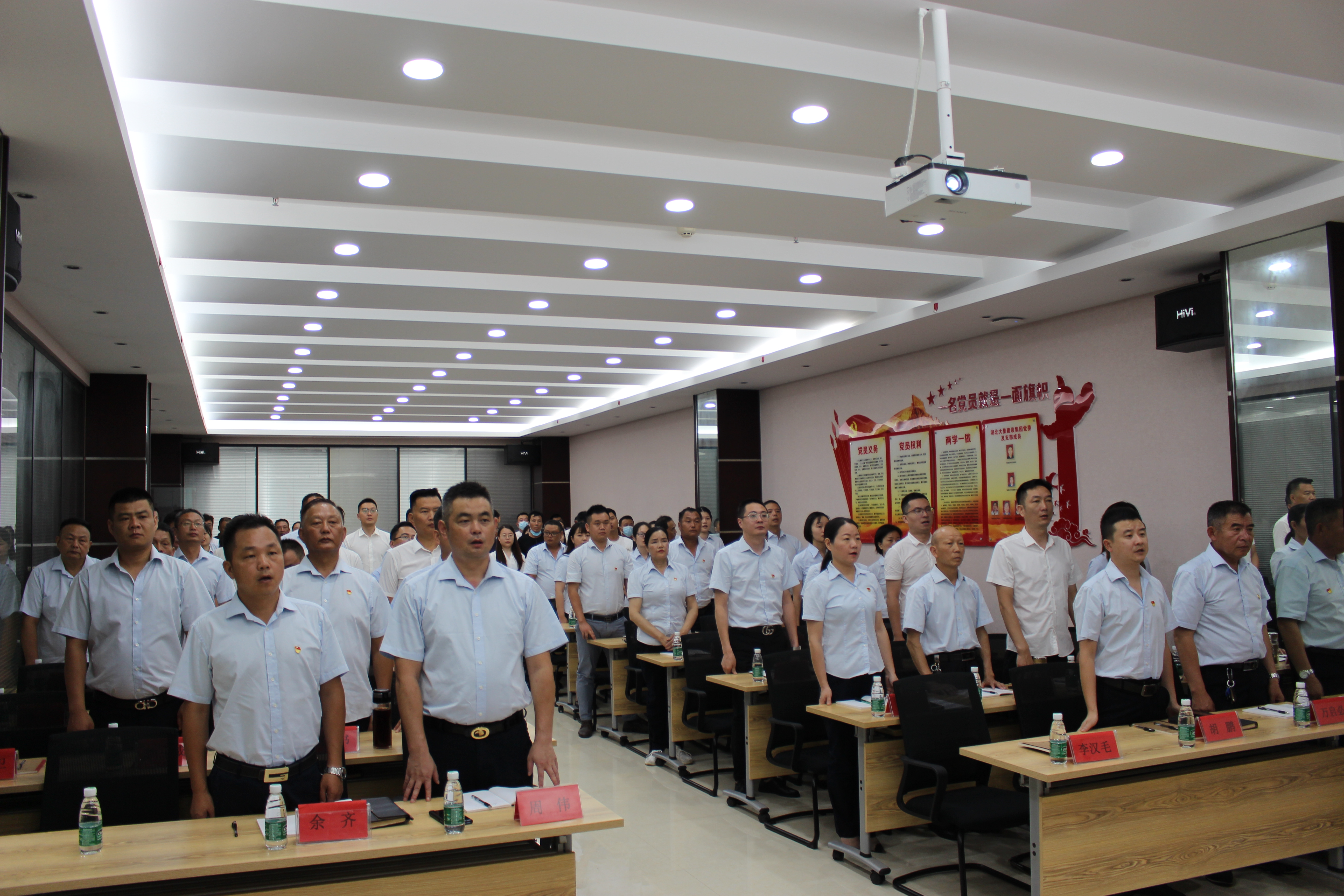 上午8:30,總結(jié)表彰大會(huì)在莊嚴(yán)的國(guó)歌聲中開(kāi)幕。集團(tuán)黨委副書記徐家富同志帶領(lǐng)全體與會(huì)黨員重溫入黨誓詞,錚錚誓言響徹會(huì)議室,共同表達(dá)了不忘初心,牢記使命,永遠(yuǎn)奮斗的堅(jiān)定決心。