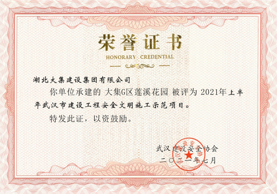 近日,由集團(tuán)公司承建的“大集G區(qū)蓮溪花園項(xiàng)目”和“蔡甸區(qū)公用人防項(xiàng)目”榮獲“2021年上半年武漢市建設(shè)工程安全文明施工示范項(xiàng)目”稱號(hào)。此項(xiàng)榮譽(yù)的獲得是對(duì)項(xiàng)目安全生產(chǎn)和文明施工管理的充分肯定,也為公司進(jìn)一步推進(jìn)安全標(biāo)準(zhǔn)化奠定了堅(jiān)實(shí)基礎(chǔ)。