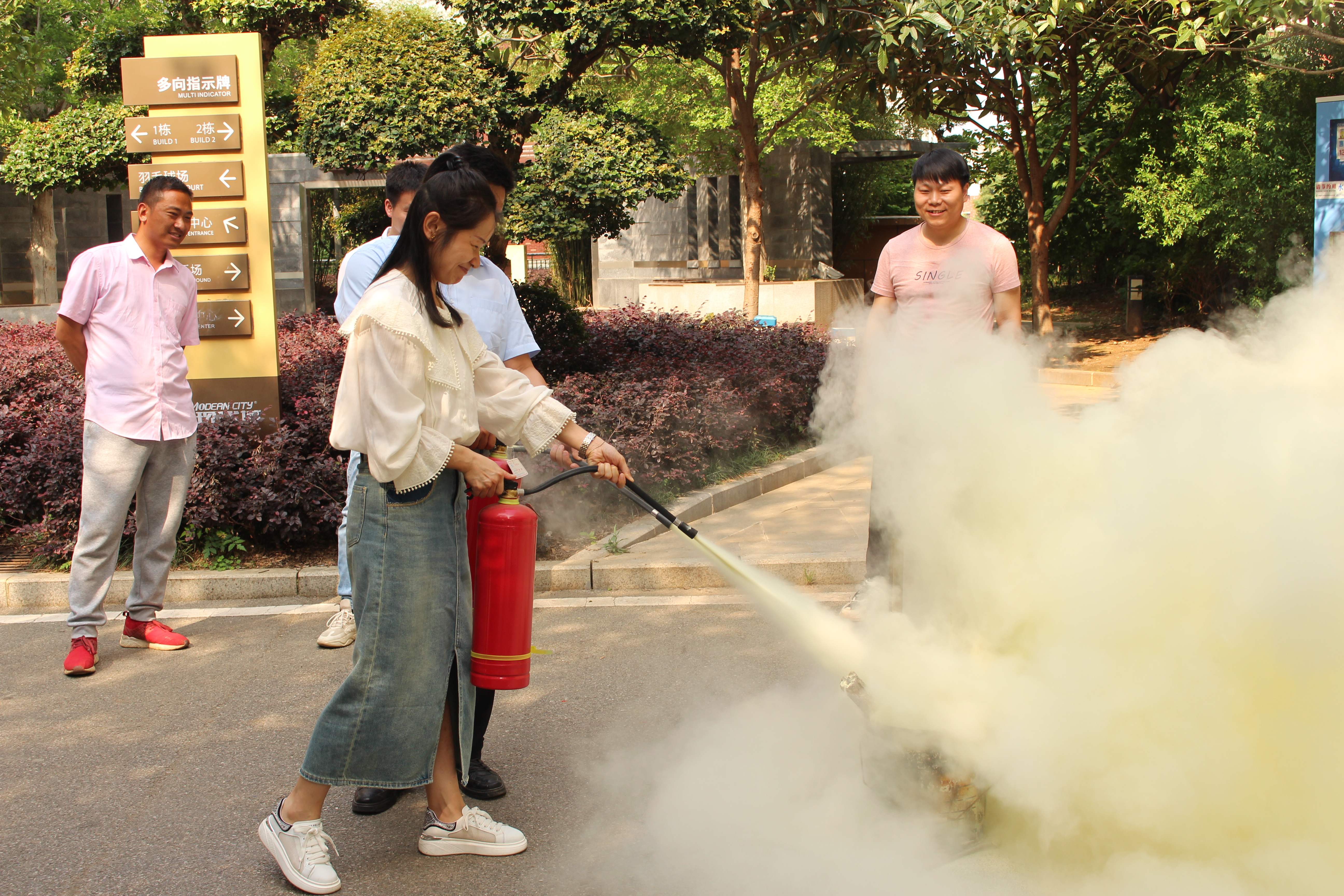 演練順利結(jié)束后,工程部安全主管秦春波還為全體員工介紹了滅火器的使用方法,并當(dāng)場演示了滅火器“提、拔、握、壓”的操作流程,讓員工以實戰(zhàn)方式參與,使在場人員更直觀地掌握相關(guān)知識。
