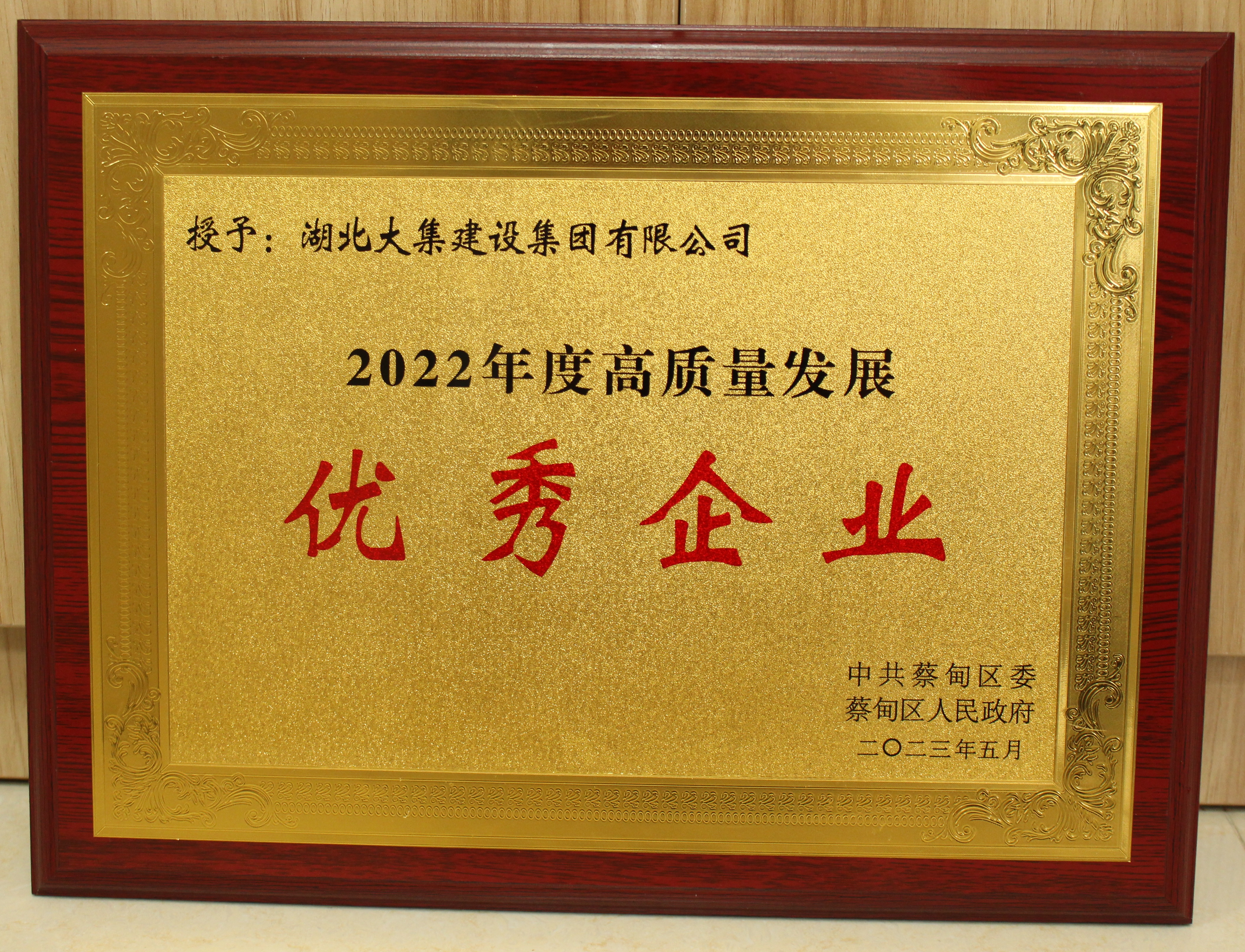 5月31日上午,中共蔡甸區(qū)委、蔡甸區(qū)人民政府組織召開了“蔡甸區(qū)學(xué)習(xí)大灣區(qū)經(jīng)驗(yàn)推動高質(zhì)量發(fā)展大會”。大會表揚(yáng)了一批突出貢獻(xiàn)企業(yè)和優(yōu)秀企業(yè),湖北大集建設(shè)集團(tuán)有限公司榮獲“2022年度高質(zhì)量發(fā)展優(yōu)秀企業(yè)”榮譽(yù)稱號。