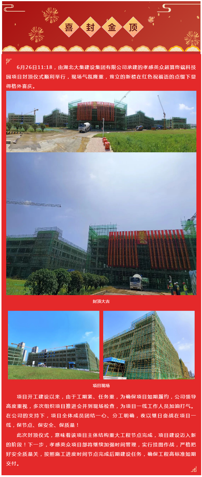 喜封金頂|孝感英眾超算終端科技園項目封頂大吉!