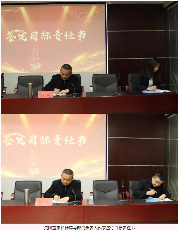 在2024年目標(biāo)責(zé)任書簽訂儀式上,集團(tuán)董事長(zhǎng)、總經(jīng)理、副總經(jīng)理依次與部門負(fù)責(zé)人代表、項(xiàng)目代表簽訂目標(biāo)責(zé)任書。責(zé)任書不僅僅是一紙文件,它承載著集團(tuán)的期望與信任,代表著責(zé)任與擔(dān)當(dāng),猶如千鈞之重。