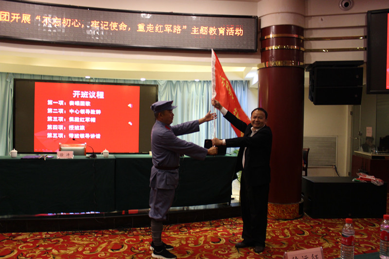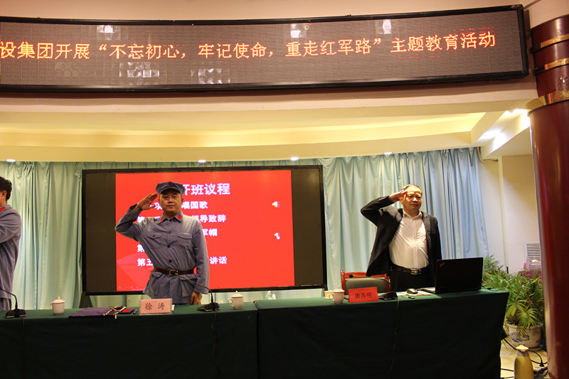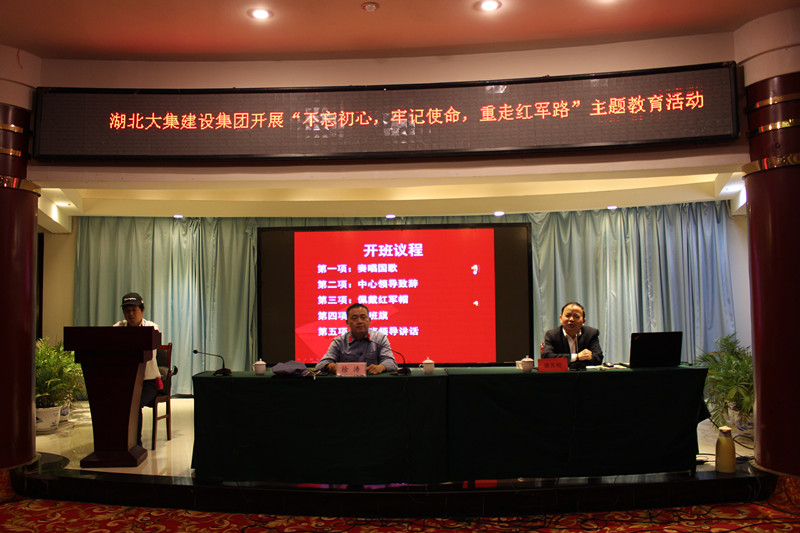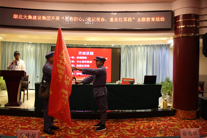 在雄壯的國歌聲中,湖北大集建設(shè)集團“不忘初心,牢記使命,重走紅軍路”主題教育活動開班儀式正式拉開帷幕。
