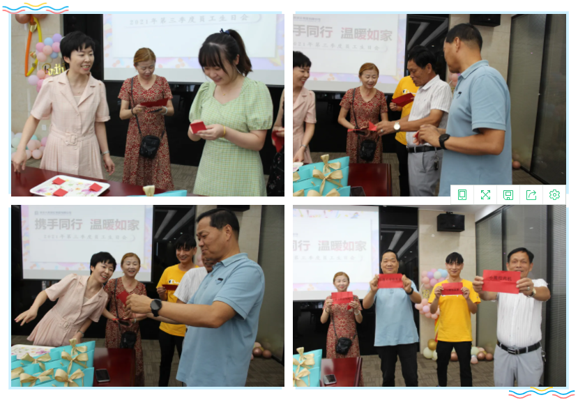 生日會(huì)簡(jiǎn)短而熱烈,大家品嘗著香甜的蛋糕,不僅讓員工們?cè)诰o張繁忙的工作之余,享受活躍又溫暖的輕松時(shí)刻;同時(shí),也讓壽星們感受到了公司領(lǐng)導(dǎo)的關(guān)懷,感受到了集體的溫暖,進(jìn)一步增強(qiáng)了員工的集體榮譽(yù)感、歸屬感和責(zé)任心,增強(qiáng)了公司凝聚力。