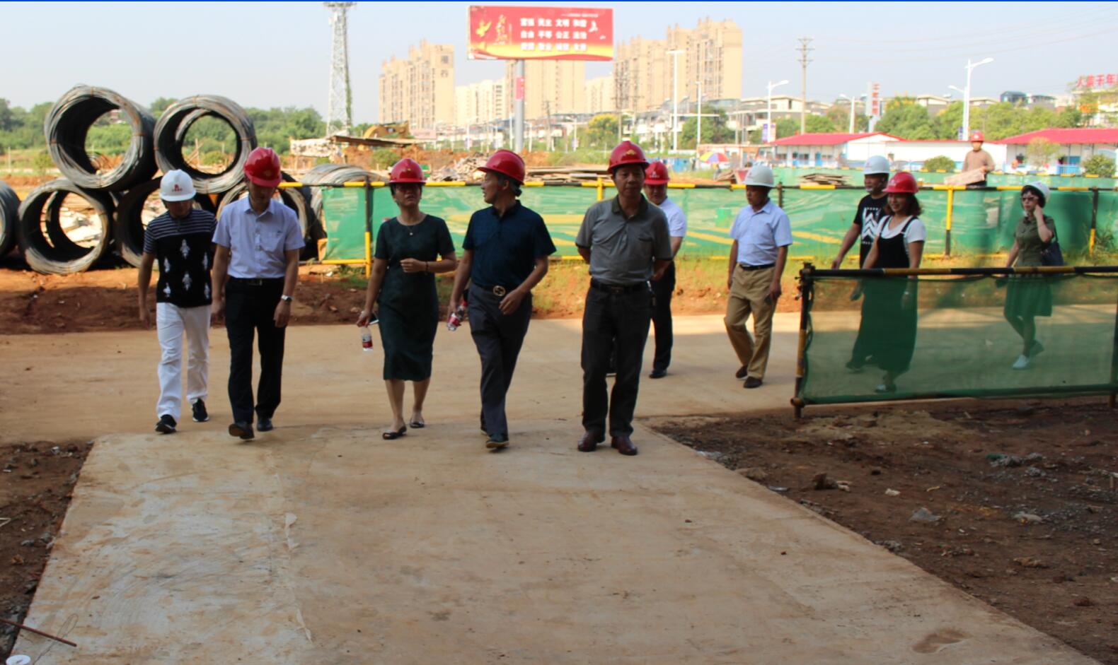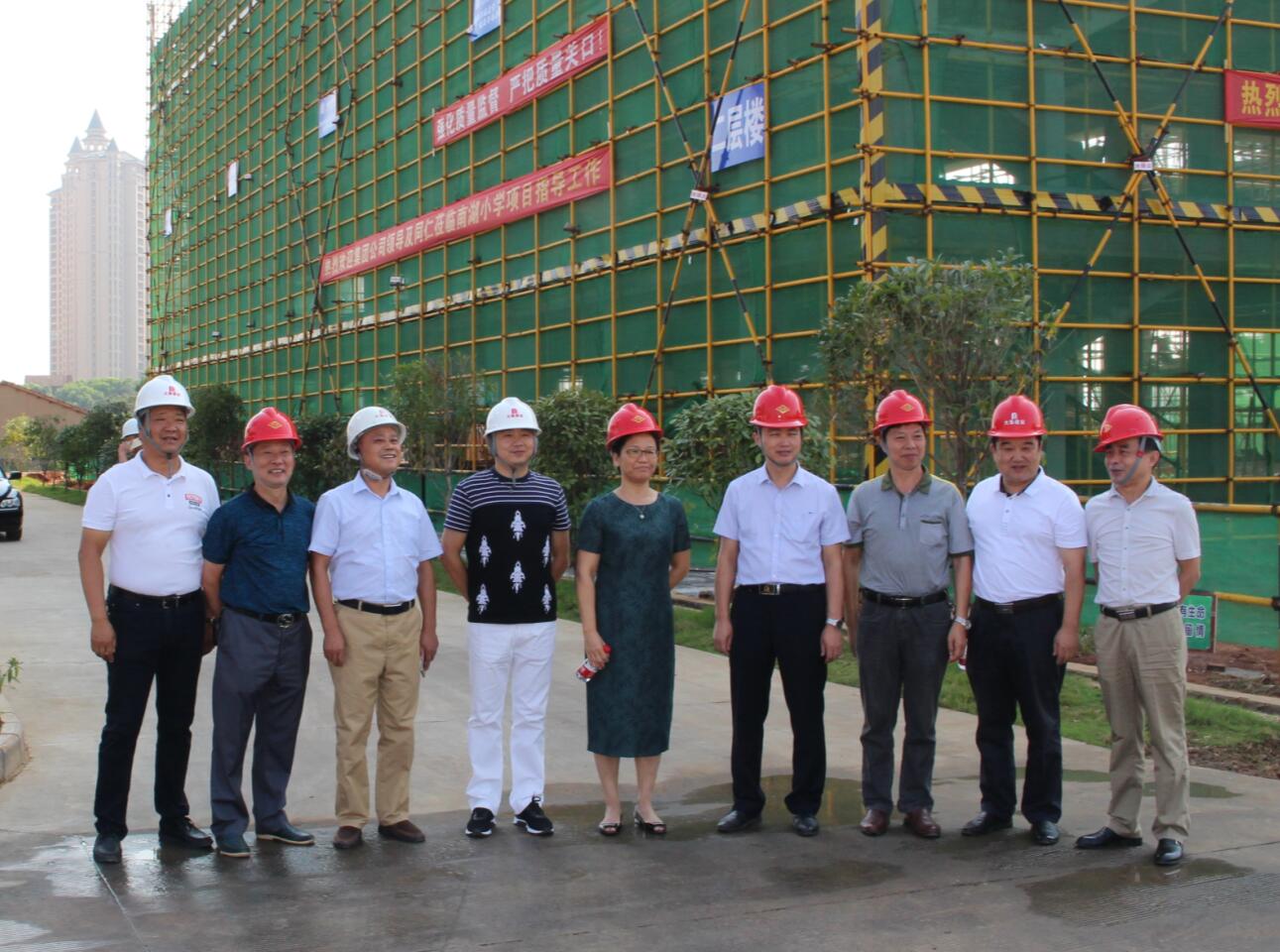 9月13日,蔡甸區(qū)人大張主任,蔡甸區(qū)教育局李局長、大集街楊主任,大集街教辦陳主任等一行蒞臨集團在建的“南湖(新光)小學”項目視察指導工作,集團董事長徐濤、副總經理徐家富陪同視察并對項目在建情況做詳細匯報!