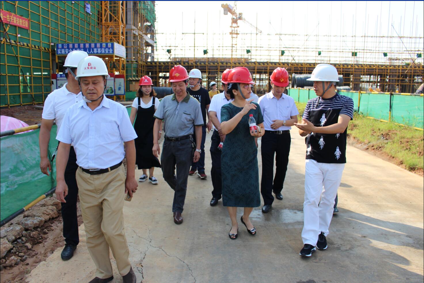 各級領導充分肯定了施工現(xiàn)場的標準化管理,詳細了解了該項目的基本情況和施工進度,并結合施工效果圖對在建的教學樓、體育場等施工現(xiàn)場進行考察督導。蔡甸區(qū)人大張主任親切地詢問了當前施工過程中是否存在需要政府協(xié)調解決的困難,現(xiàn)場囑咐各級領導要積極協(xié)助給予支持,確保項目按期完成建設目標,為明年即將入學的廣大師生交上一份滿意的答卷!
