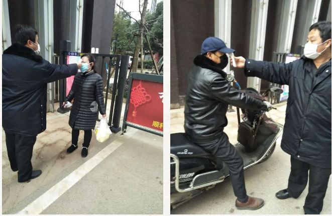 疫情之下,他們即便沒有防護服、一次性口罩一天一個,也始終堅守在門崗,量體溫,做登記,一個個重復的動作,一遍遍重復的話語,他們不知道做了多少次,說了多少遍;