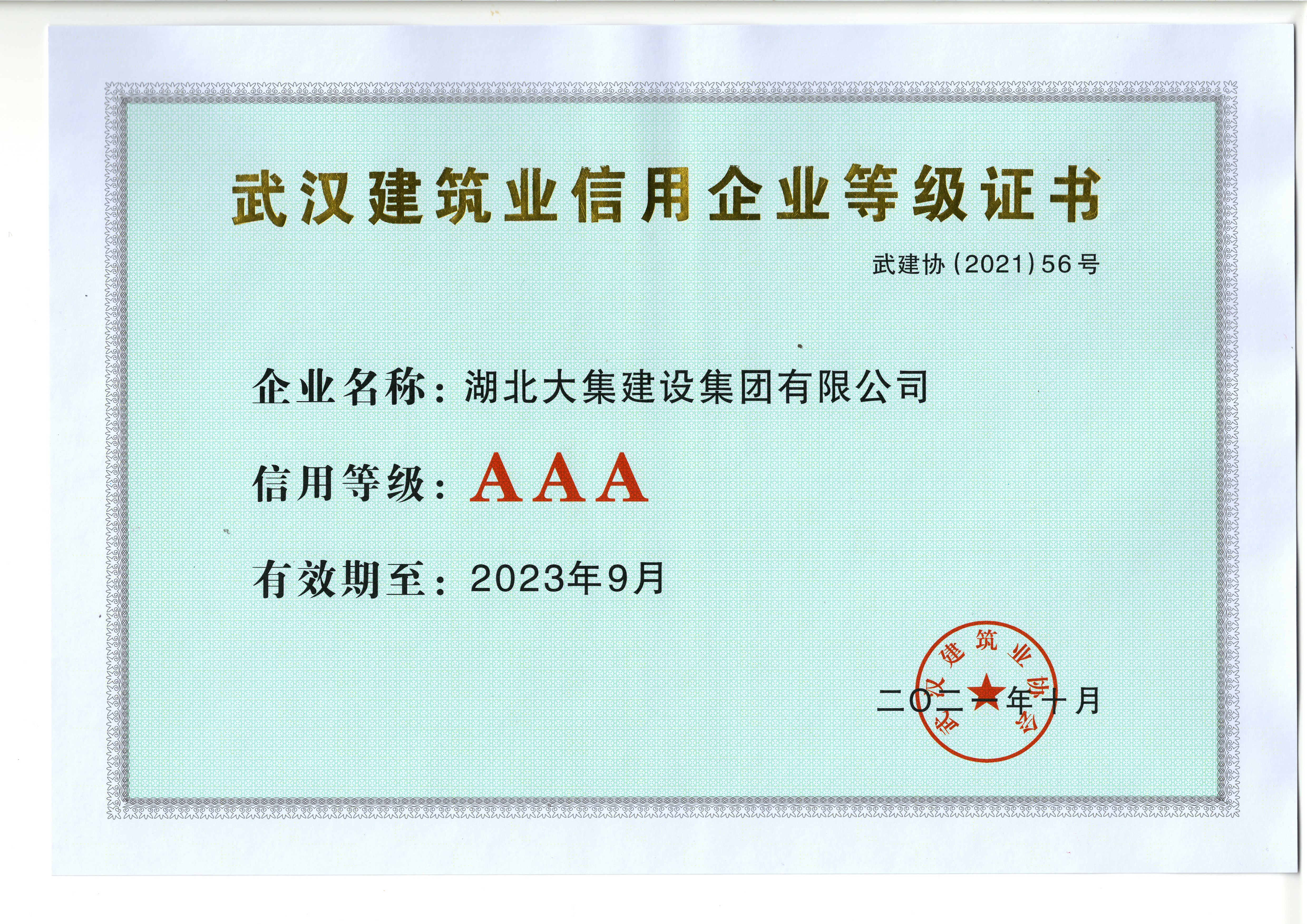 近日,武漢市建筑業(yè)協(xié)會發(fā)布2019-2020年度信用企業(yè)評價結(jié)果,湖北大集建設(shè)集團(tuán)再次獲評“武漢建筑業(yè)AAA信用企業(yè)”。