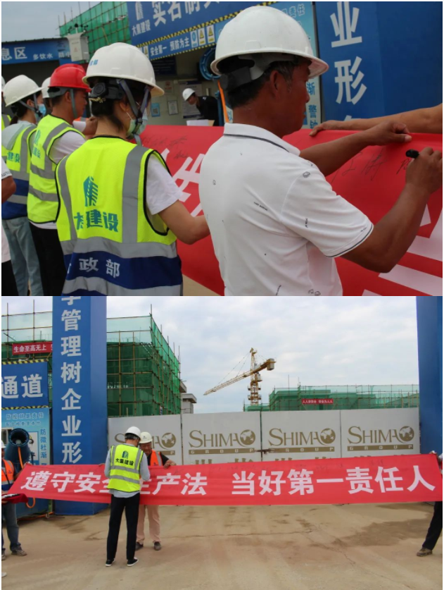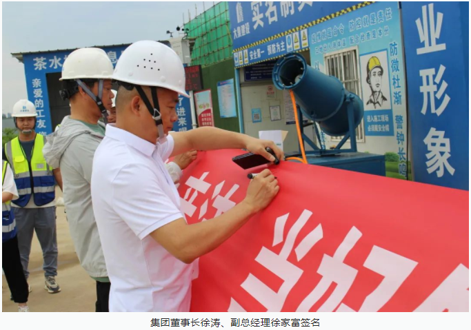 活動開始,集團(tuán)董事長徐濤、副總經(jīng)理徐家富及各部門負(fù)責(zé)人、各項目經(jīng)理率先在“遵守安全生產(chǎn)法,當(dāng)好第一責(zé)任人”條幅上鄭重簽名,寫下對肩負(fù)安全生產(chǎn)責(zé)任的承諾,隨后各項目施工員、安全員紛紛在條幅上寫下自己的名字,表達(dá)對做好安全生產(chǎn)相關(guān)工作的信心和決心。
