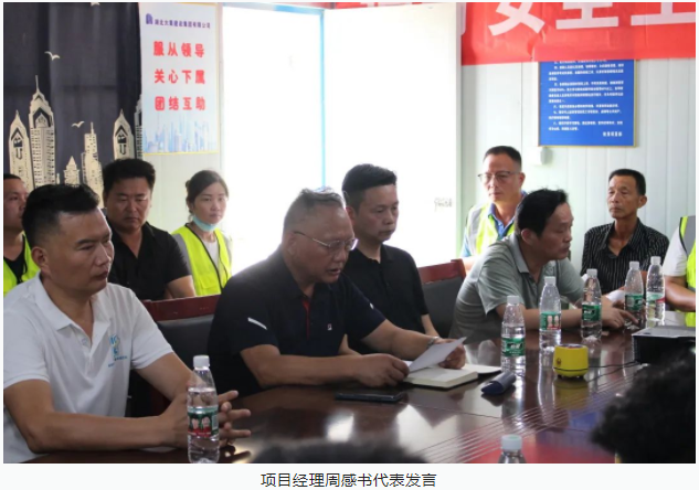 世茂48#地塊項目經(jīng)理周感書代表發(fā)言。周總首先介紹了項目的基本情況,隨后詳細(xì)分享了世茂48#地塊項目自開工以來在安全管理方面的經(jīng)驗及措施,并表示在項目管理中,安全和質(zhì)量必須放在第一順位,沒有安全和質(zhì)量,速度和效益都是白談。