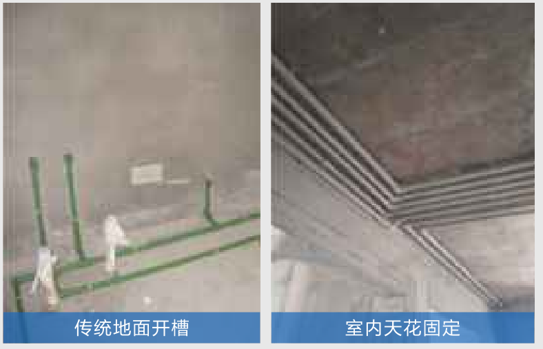 戶內(nèi)水管安裝按照以往的做法會(huì)在建筑找平層開槽再進(jìn)行預(yù)埋,裝修完成后如遇到滲漏水很難進(jìn)行維修。為實(shí)現(xiàn)無后顧之憂,全部設(shè)置在天花,公共部位進(jìn)行吊頂掩蓋,戶內(nèi)走梁交接陰角,用木盒子裝修掩蓋,這樣不但解后期維修問題,樓板地面不再開槽,大大減少建筑找平厚度,使戶內(nèi)凈高空間增大。