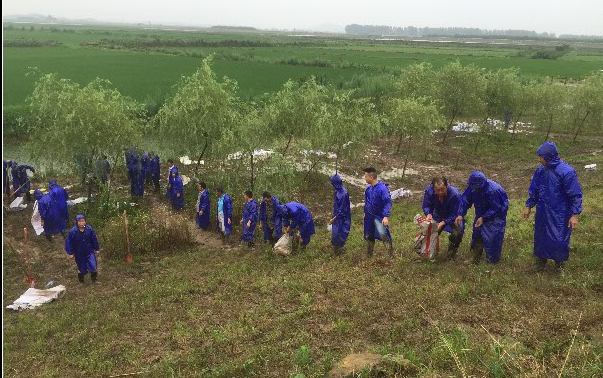 壘筑桐湖堤防是我們今天的首要任務(wù),集團(tuán)公司徐總統(tǒng)籌安排,到達(dá)堤防處,工程管理部部長黃國鋒合理布置,大家分工合作,先將36人的搶險人員平均分成2個隊,每個隊2人負(fù)責(zé)用鐵鍬鏟土,2人負(fù)責(zé)用編織袋裝土,留下2人負(fù)責(zé)將土包在堤邊碼堆,其余人全部依次排列傳遞土包,大家通力合作,井然有序,不久,堤防邊已悄然升起一道道的銀白線,尤如筑起的長城,與湖水兩兩相隔。